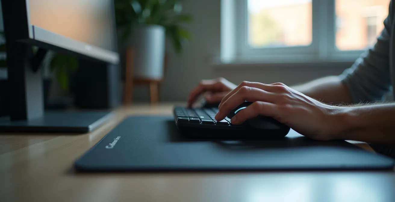 La transition vers un clavier compact demande un petit temps d’adaptation, mais les bénéfices en termes de posture et de liberté de mouvement sont immédiats. Cela vous permet de garder vos bras plus alignés avec vos épaules, réduisant la tension, et d’utiliser un tapis de souris XXL à son plein potentiel. Arrêtez de sacrifier votre performance pour des touches dont vous ne vous servez pas.